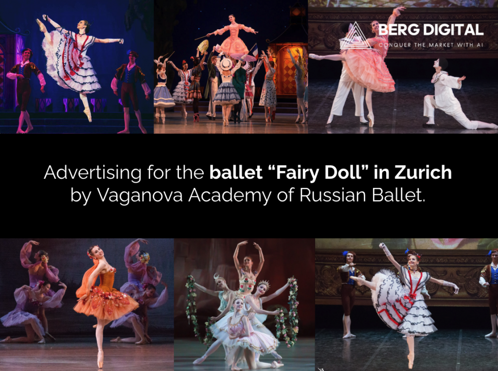 Swiss Stage AG hasn’t own website. Therefore I had to work without Google counter, remarketing, Tag Manager, Google Console. I launched a multilingual advertising campaign with search, video and display ads.